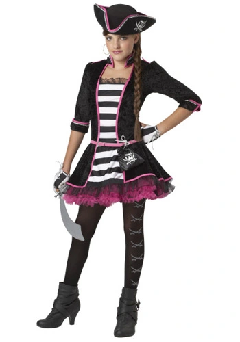 Dress w/ insetPirate hatBelt w/ purseGlovelettesPrinted leggings